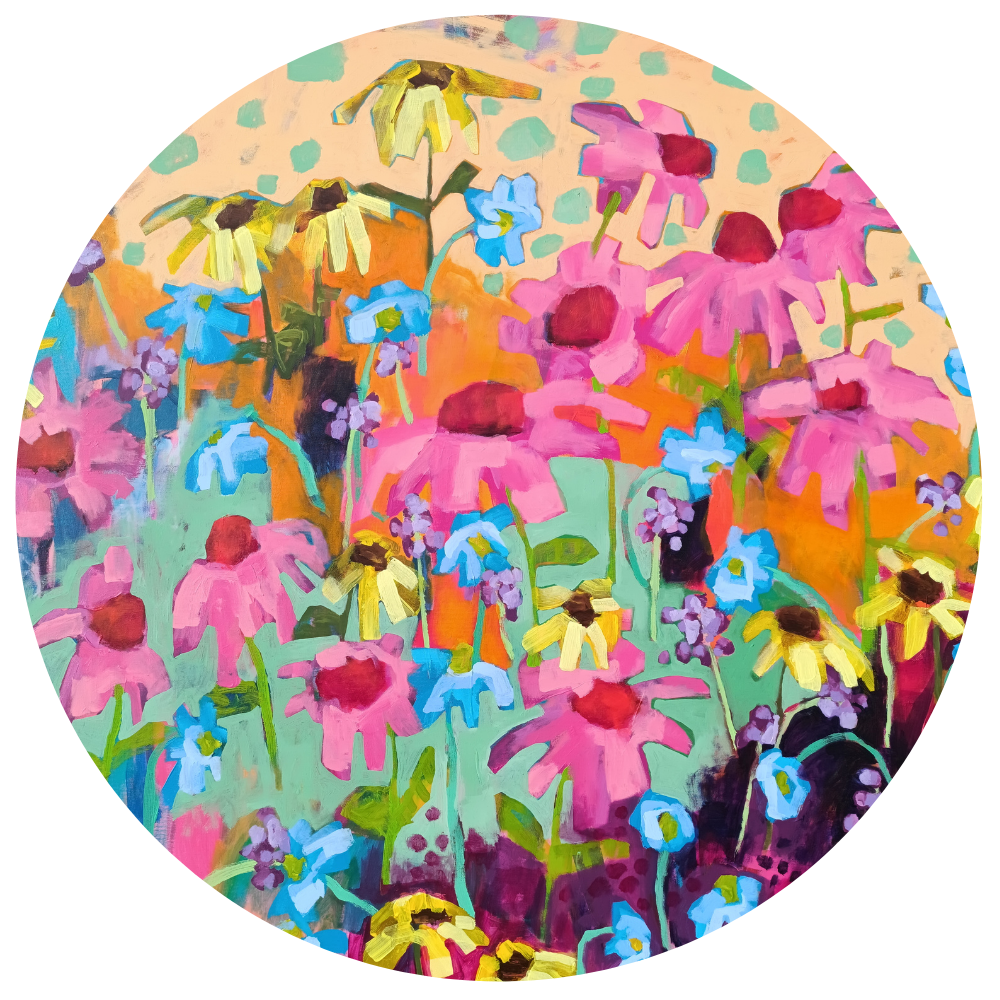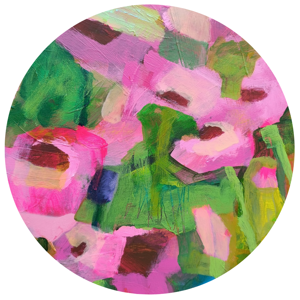 I am a visual artist working with intuitive painting and expressive color. My work is inspired by nature, everyday moments, and the painting process itself — layering, repetition, and allowing space for chance and imperfection.