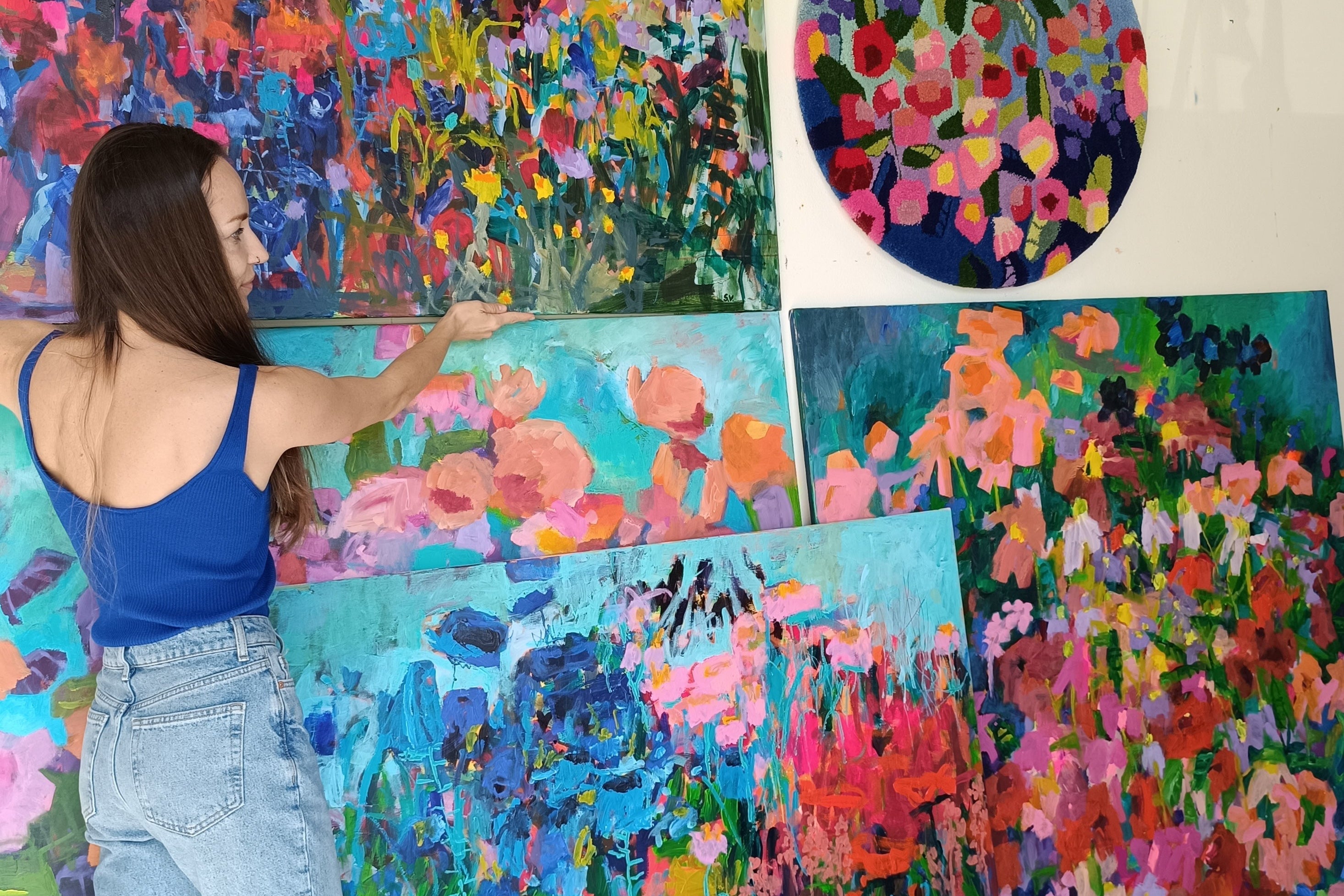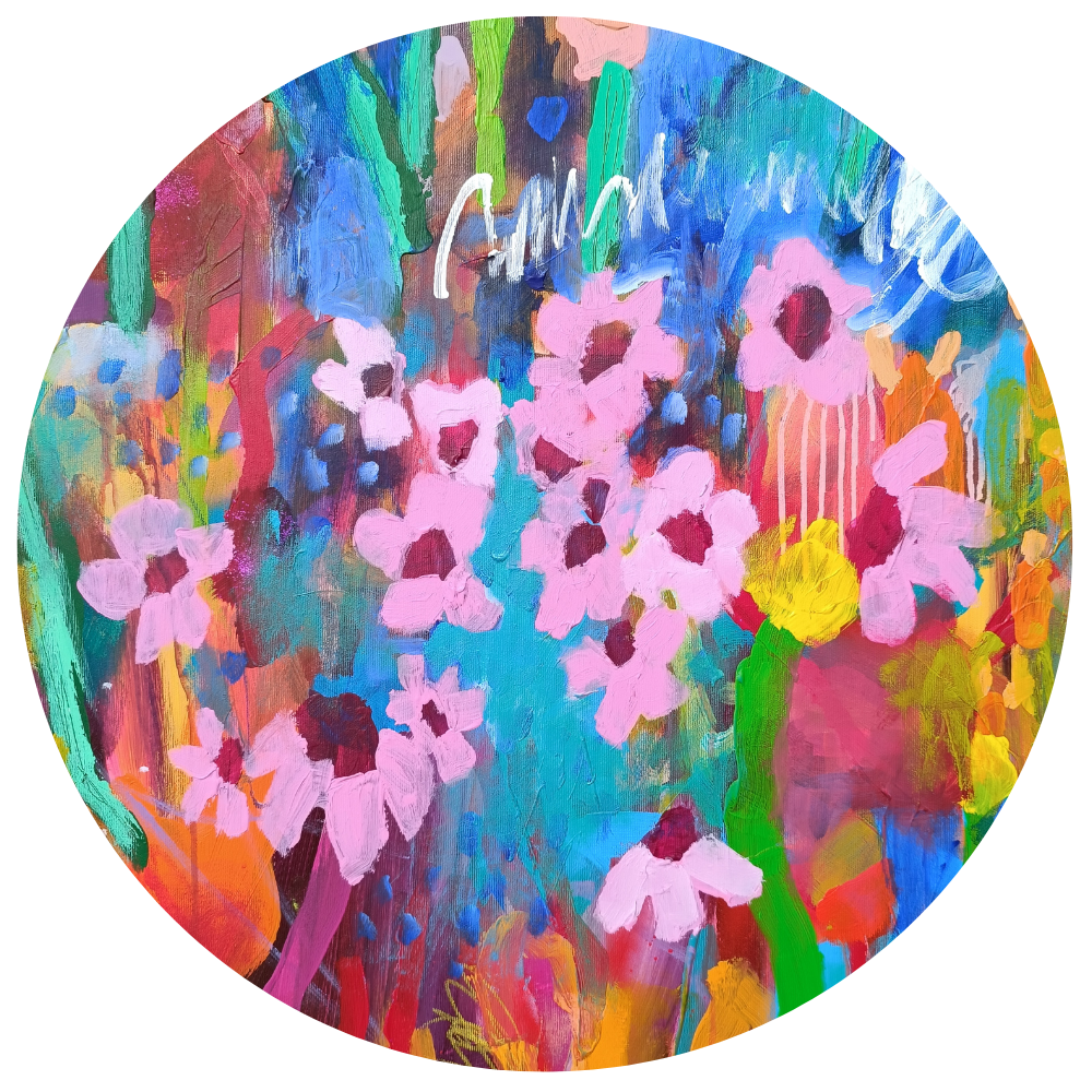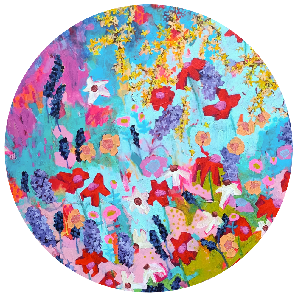 I am a visual artist working with intuitive painting and expressive color. My work is inspired by nature, everyday moments, and the painting process itself — layering, repetition, and allowing space for chance and imperfection.